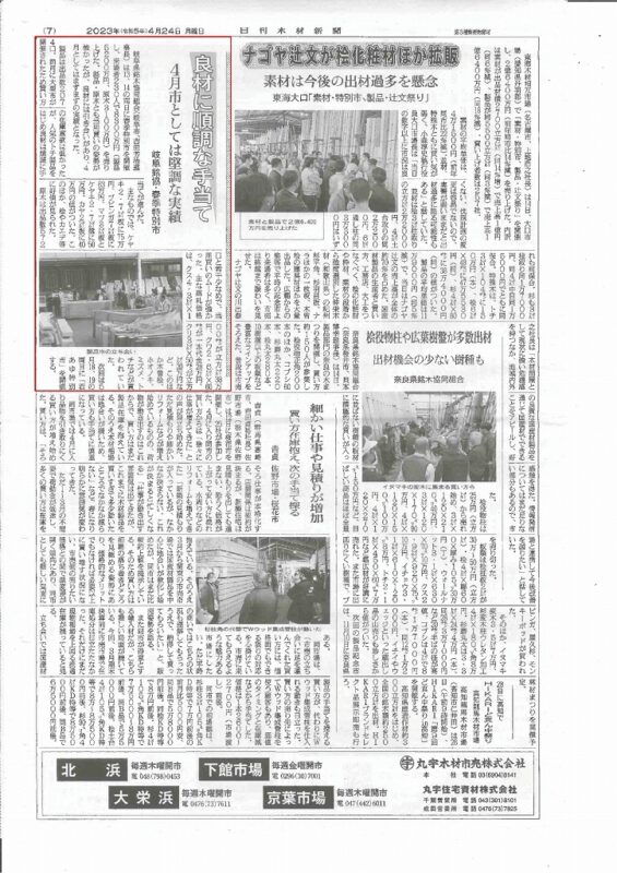 4月24日の日刊木材新聞にて、弊社社長が理事長を務める岐阜県銘木協同組合の春季特別市についての記事が掲載されました。 …
