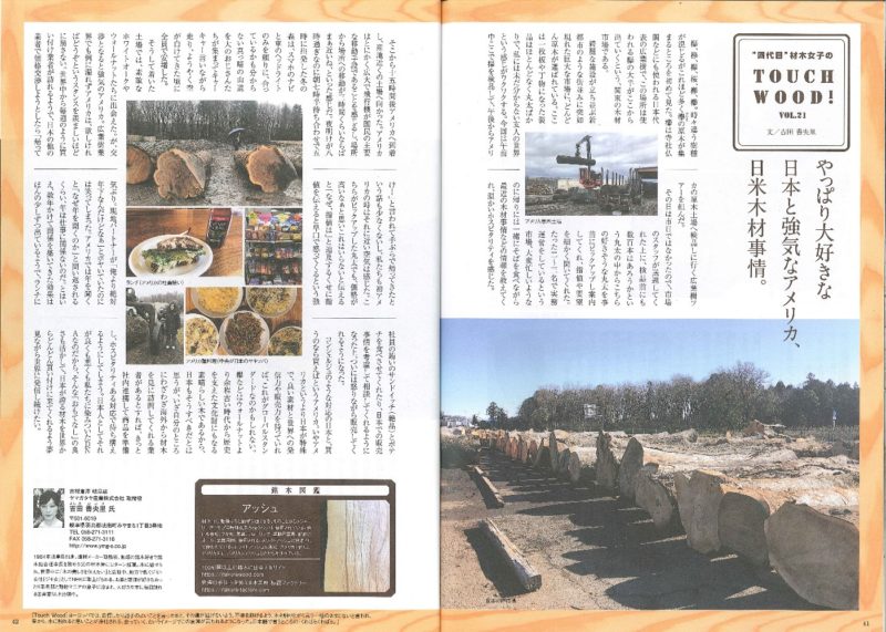 ジャパトラ2月号に「TOUCH WOOD!」の20号が掲載されました。 今回はアメリカへ原木の買い付けにいった時の話です。 前回はアメリカ…