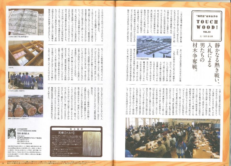 ジャパトラ4月号に「TOUCH WOOD!」の22号が掲載されました。 今回は北海道の市場に行き、いつもとは違う入札の仕方を見てきました。これを…