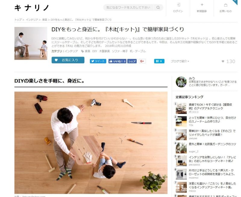 こんにちは DIYERSさんに木itを掲載して頂けました! なんと、今はTOPページにて紹介して頂けています。記事の中には弊社の田中部長が…