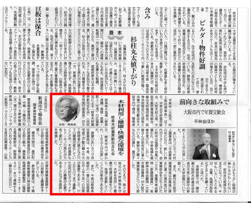 今月行われた「岐阜木材業界新年互礼会」について、弊社社長が挨拶させて頂き、そのことを林経新聞と木材工業新聞に取り上げて頂きました!…