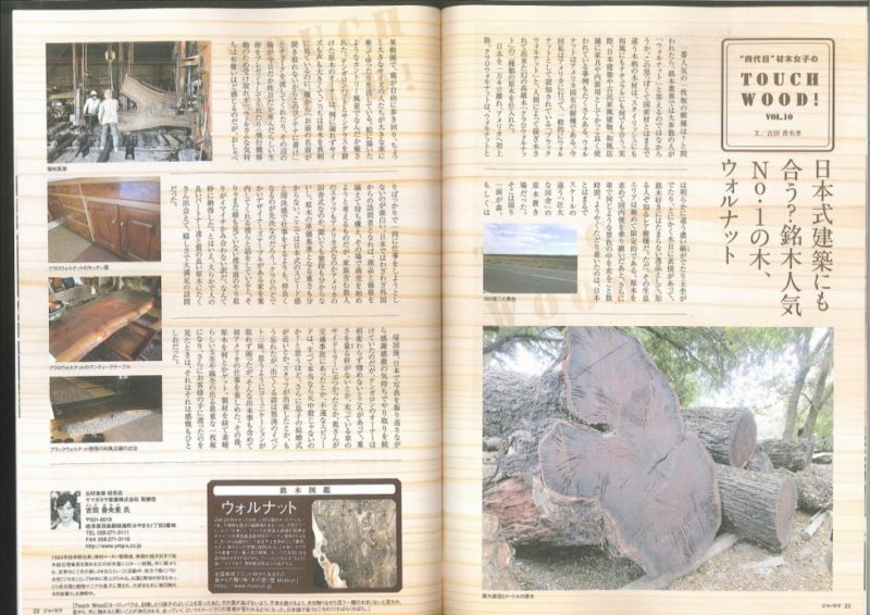 ジャパトラ4月号に「TOUCH WOOD!」の10号が掲載されました。今回はウォールナットの話! ウォールナットといえば弊社の人気樹種ランキング…