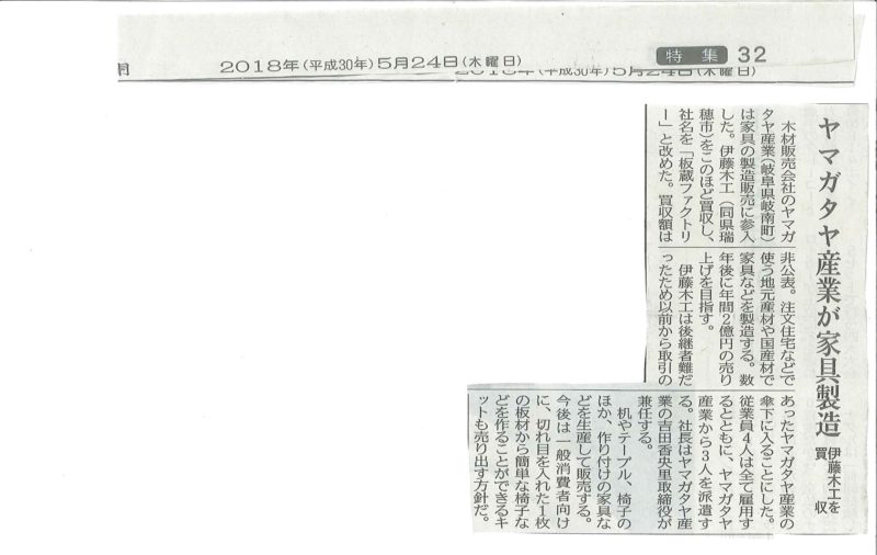 このところ、紙面をにぎわせておりますが(それほどでもない)岐阜新聞に負けじと、中日新聞も板蔵ファクトリーについて記事にしていただけました。 ヤマ…