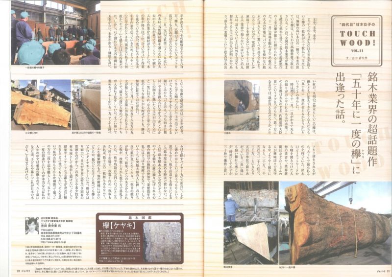 こんにちはジャパトラの5月号に「TOUCH WOOD!」が掲載されました。 今回は日本が誇る銘木「ケヤキ」の玉杢の話です。 つい最近業界を…