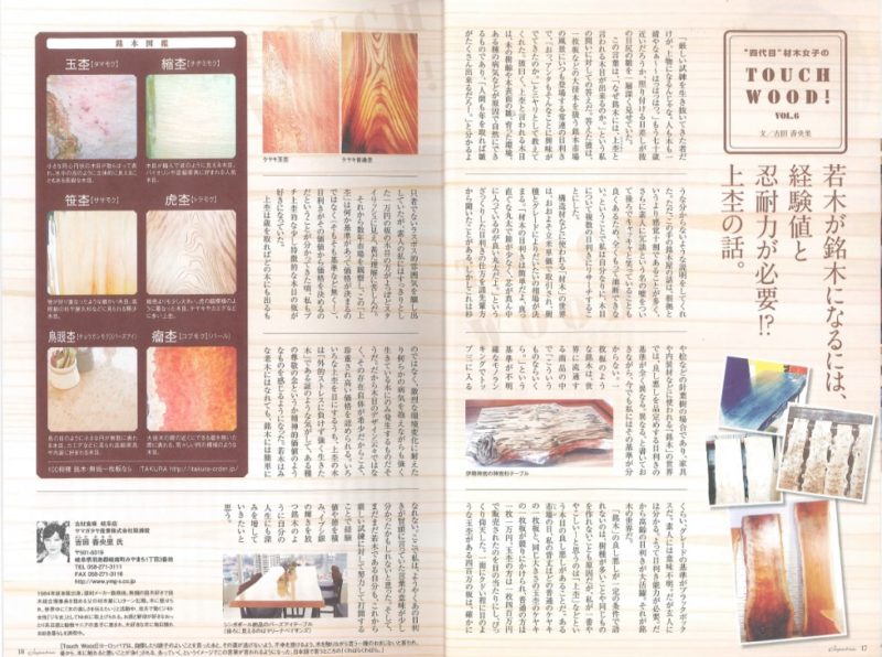 後世に伝えたい日本の伝統「ジャパトラ」7月に記事が掲載されました。 弊社取締役の吉田が、「TOUCH WOOD!」というタイトルで「材木…