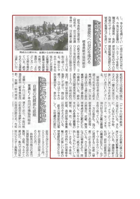 2023年5月26日の日刊木材新聞んて、弊社社長が理事長を務める岐阜県銘木協同組合が開催した「若あゆ特別市」についての記事が掲載されました。 …