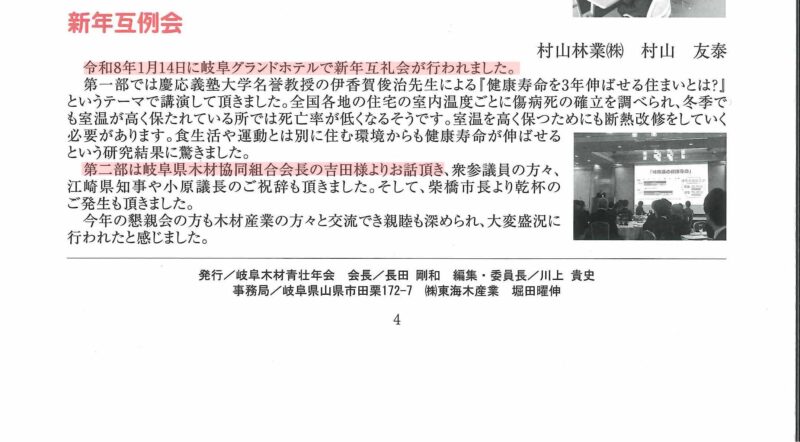 岐阜木材業界新年互礼会につきましては、以下の記事もご覧ください。