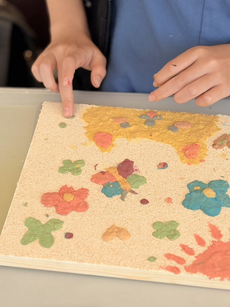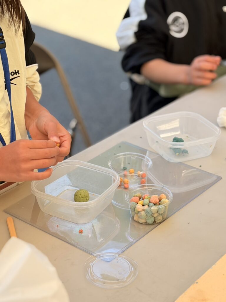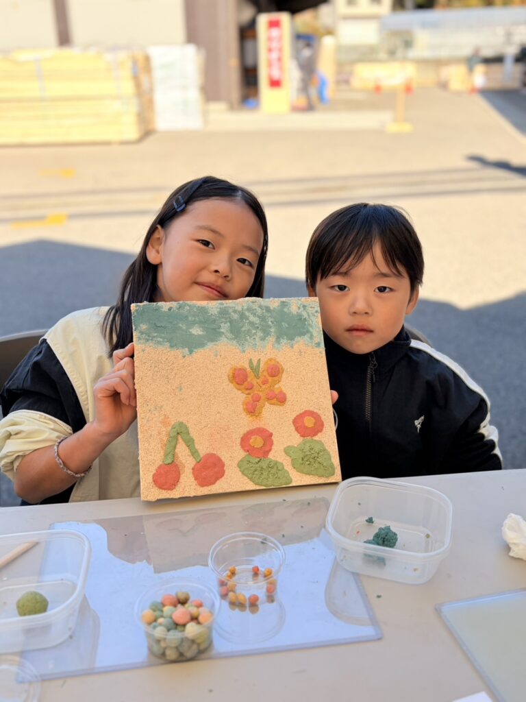 会場では、弊社の木の塗り壁材「Mokkun」を使ったワークショップを行い、多くの方に素材の質感や木の香りを体験していただきました。