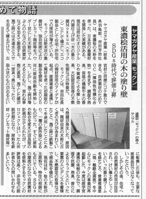 ということで、2月16日とちょっと前になりますが、日刊木材新聞に「木の塗り壁Mokkun」を取材していただきました。