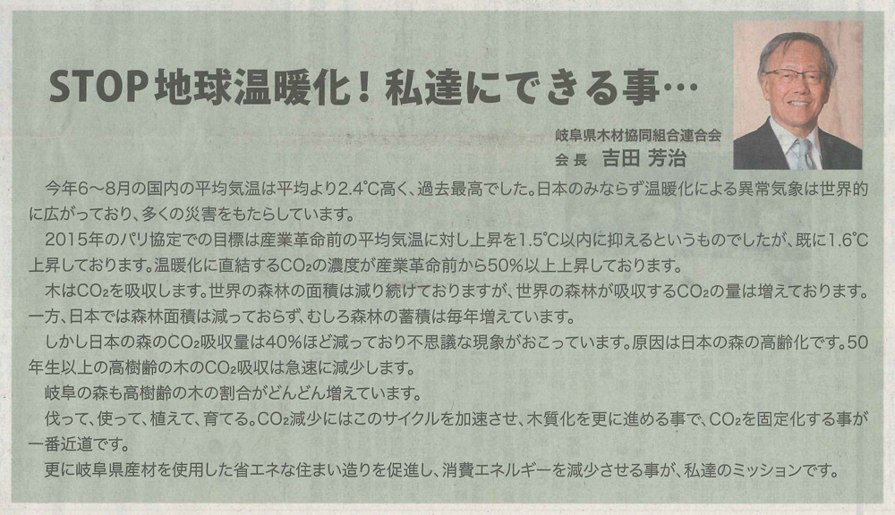 本特集内で、弊社社長が岐阜県木材協同組合連合会の会長としてコメントを寄せております。