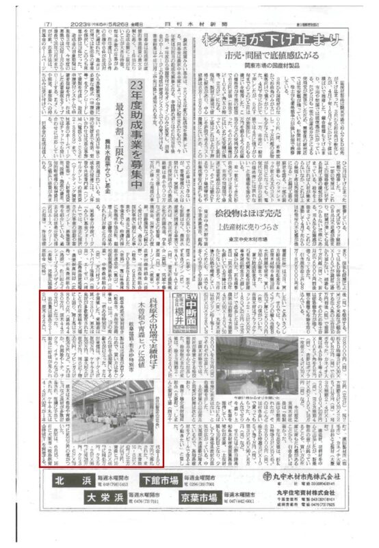 2023年5月26日の日刊木材新聞んて、弊社社長が理事長を務める岐阜県銘木協同組合が開催した「若あゆ特別市」についての記事が掲載されました。 …
